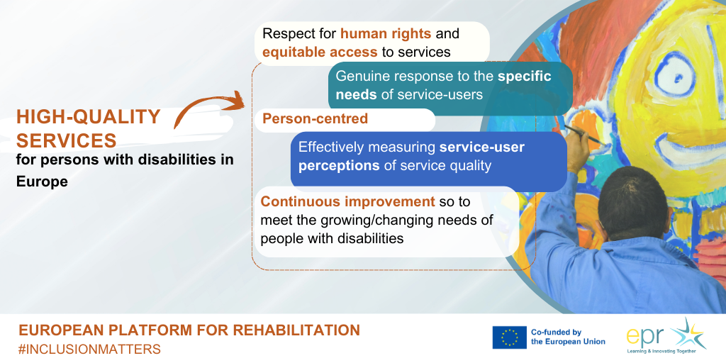 In 2025, EPR launched an online campaign to highlight how high-quality services directly impact and lead to a better quality of life of people with disabilities. It aimed to inform and equip service providers with some of the available tools that support the meeting of high standards in service delivery, and that reflect the user’s feedback and experience. To achieve this goal, we developed and disseminated several infographics on this theme across our social media platforms, using the hashtag #InclusionMatters. Explore the graphics below:
