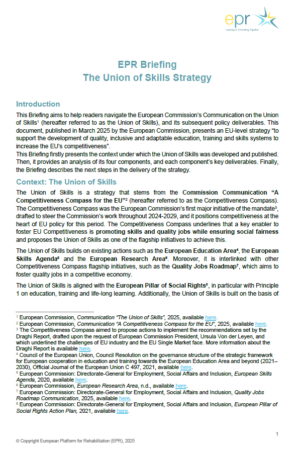 The EPR Briefing begins by outlining the policy context under which the Union of Skills was developed. It then provides an analysis of its four components and their key deliverables., and concludes with a description of the next steps in the delivery of the strategy.